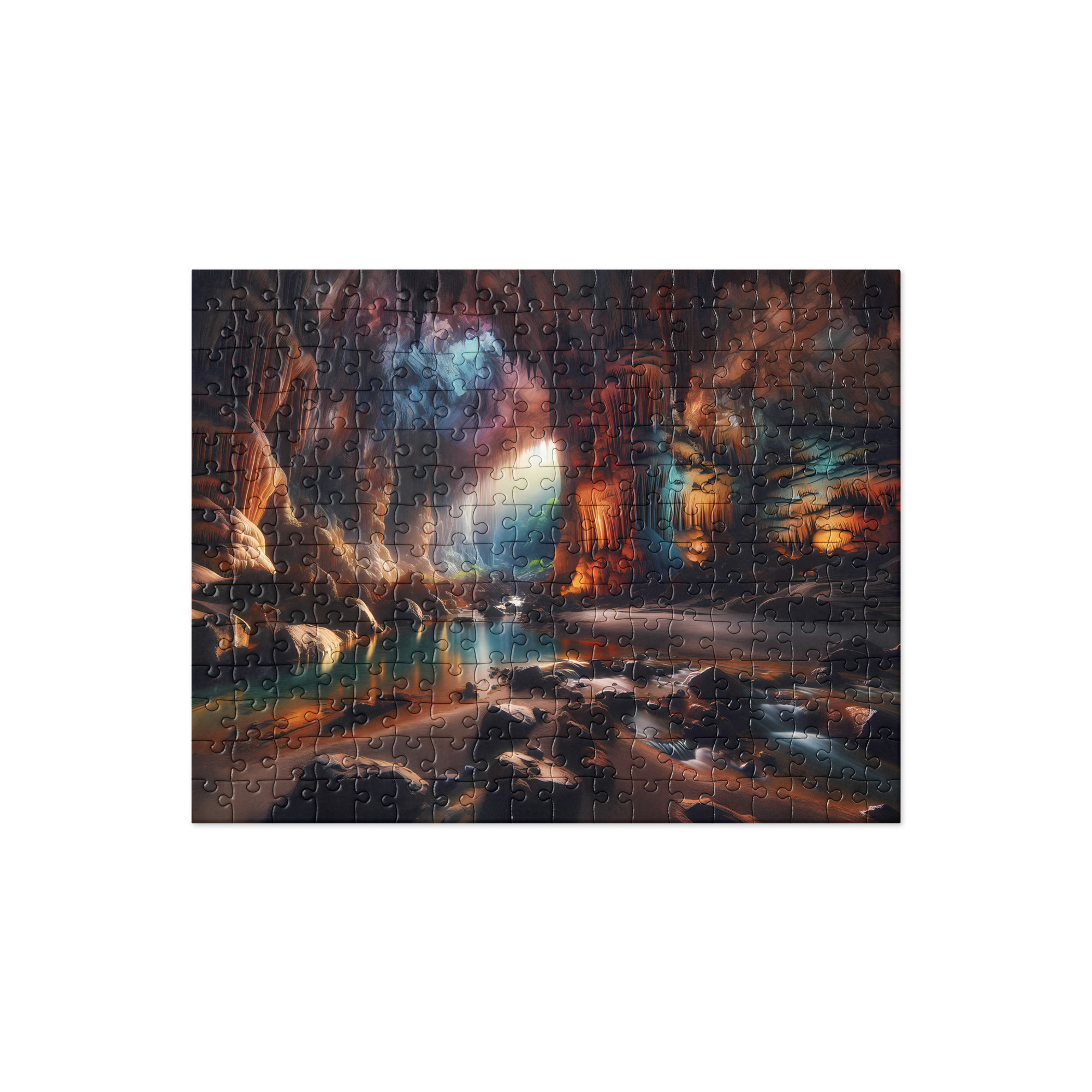 Embark on an enthralling journey into the depths of the earth with our captivating jigsaw puzzle, “Mystic Cave Escape.” This mesmerizing puzzle offers an immersive glimpse into the mysterious world of a hidden cavern, where stalactites hang like icicles from the ceiling and ancient rock formations weave tales of bygone eras.