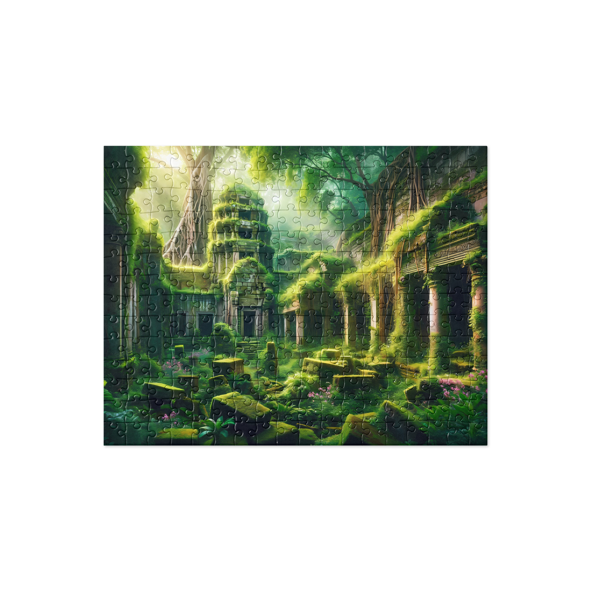 Embark on a mesmerizing journey through time with our captivating jigsaw puzzle featuring ancient city ruins entangled in lush overgrowth. Immerse yourself in the mystique of a forgotten civilization as you piece together this breathtaking scene, where the passage of centuries has melded nature and history into an awe-inspiring tableau.