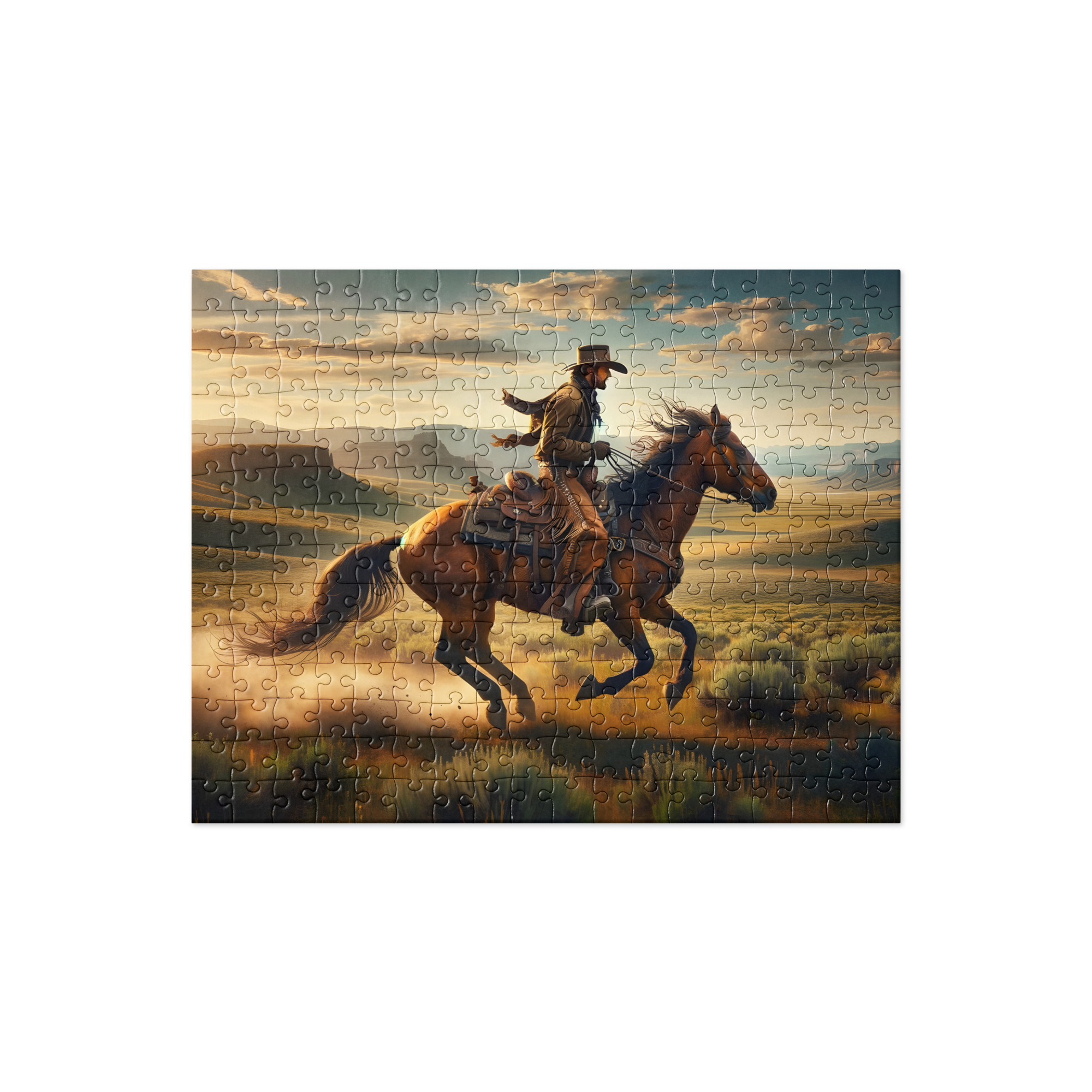 Ride into the Wild West with our thrilling jigsaw puzzle featuring a dynamic scene of a rugged cowboy astride a powerful horse! Assemble this captivating puzzle to witness the iconic cowboy culture come to life in vivid detail. With every piece you connect, you’ll piece together the essence of the untamed frontier: the wind-swept plains, the vast expanse of the open range, and the fearless spirit of the lone rider as he guides his trusty steed through the rugged terrain. Get ready to embark on an adventure filled with excitement, courage, and the timeless allure of the Old West. Saddle up and let your imagination roam free as you piece together this exhilarating cowboy and horse jigsaw puzzle!